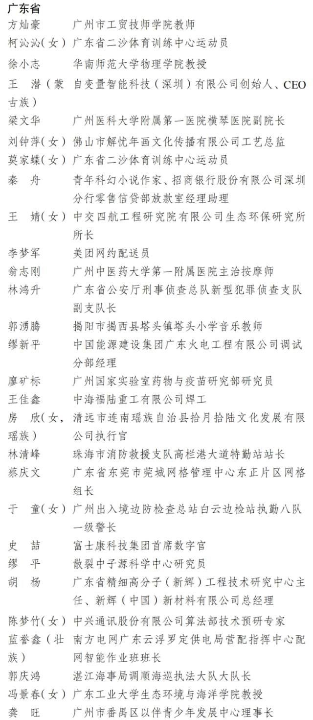 广州市工贸技师学院教师方灿豪、广东省二沙体育训练中心运动员莫家蝶、柯沁沁、美团网约配送员李梦军、华南师范大学物理学院教授徐小志、广州医科大学等28人获评2026年度新时代青年先锋。