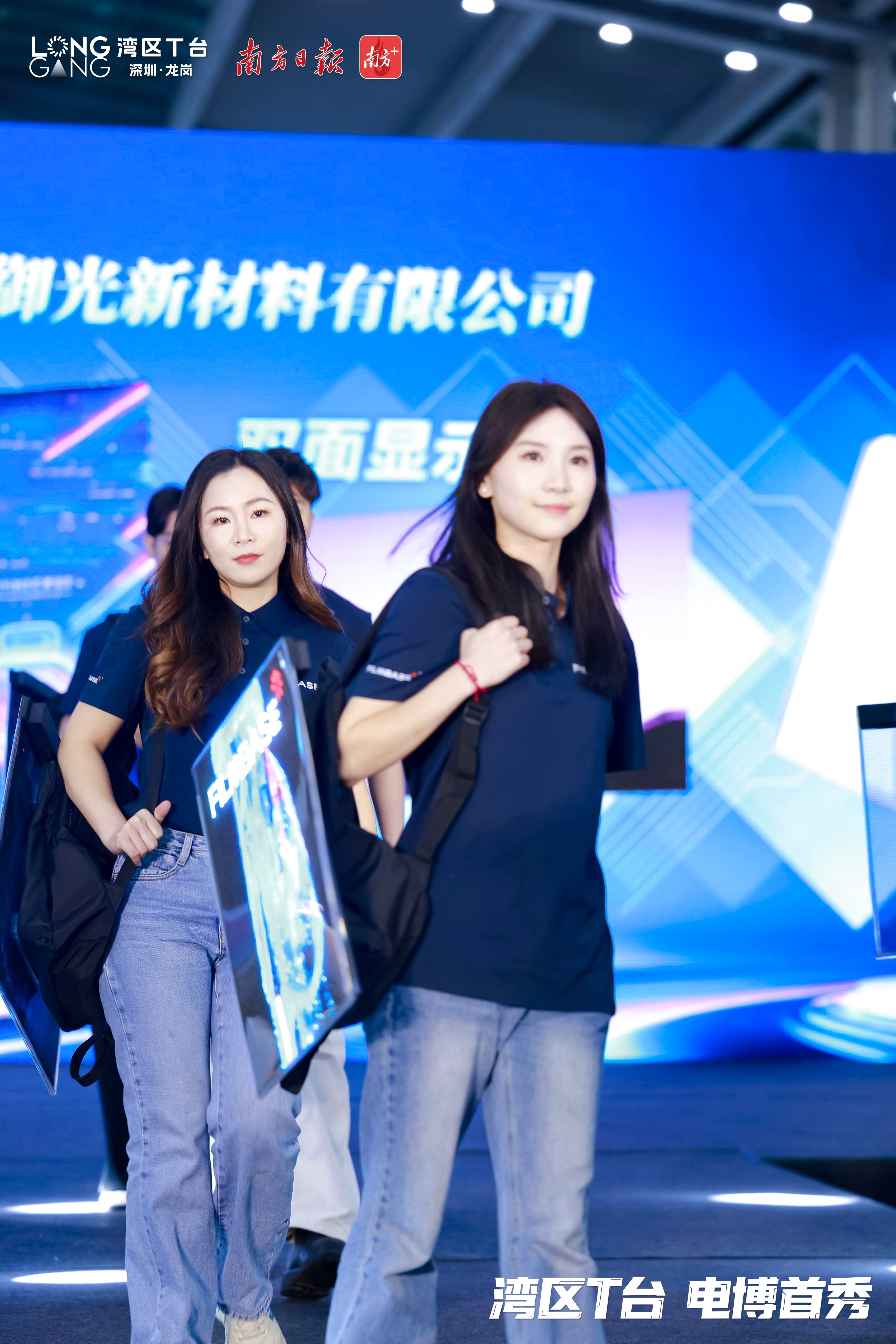 4月9日,在第十四届中国电子信息博览会的“湾区T台 电博首秀”活动上,深圳御光新材料有限公司(下称“御光”)携穿戴屏、飞天屏、智能调光膜等创新产品惊艳亮相,搭配外场AI互动3D透明屏,吸引众多客商驻足围观咨询,达成多项合作意向。